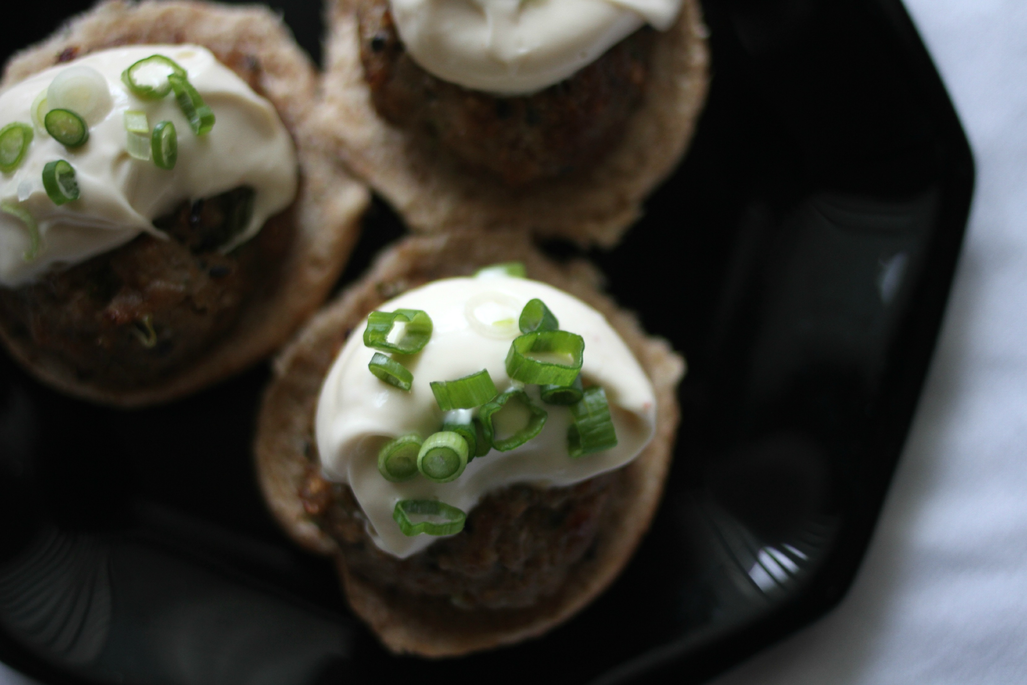Split rolls and top each with a burger. Spread 1 tsp teriyaki mayonnaise on each